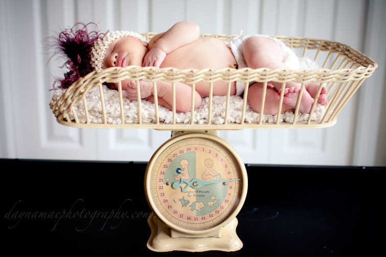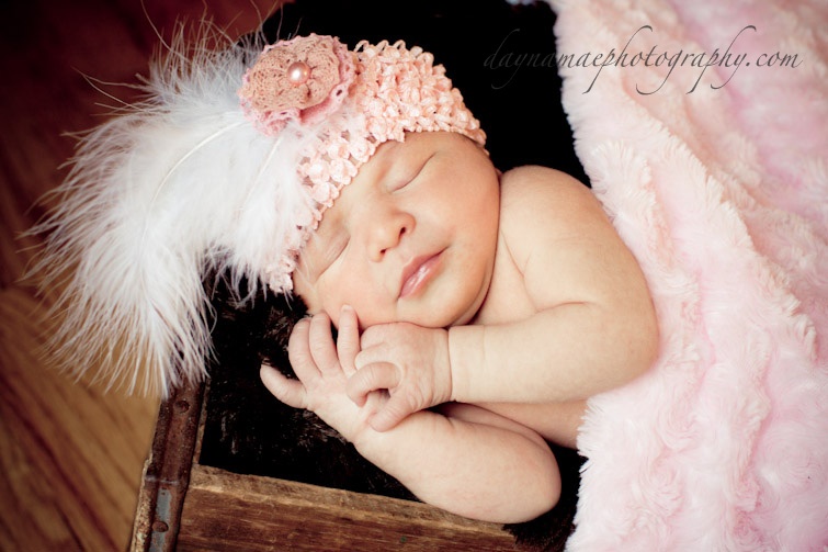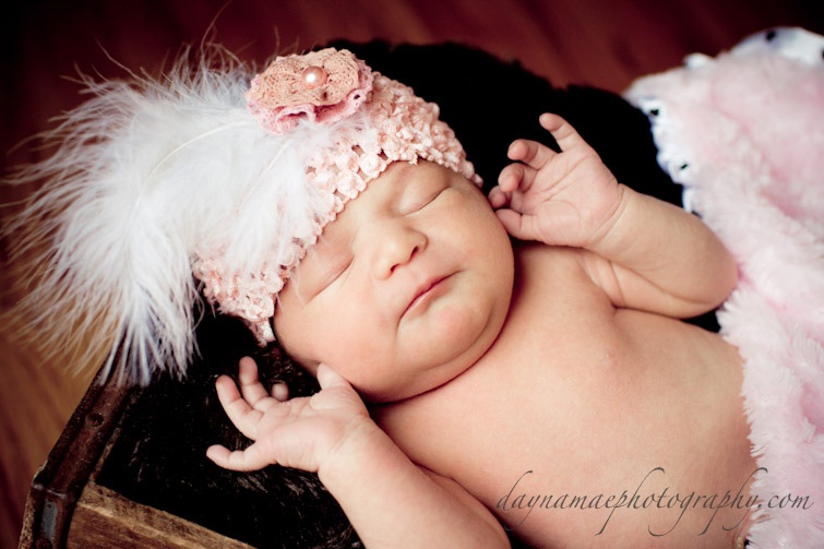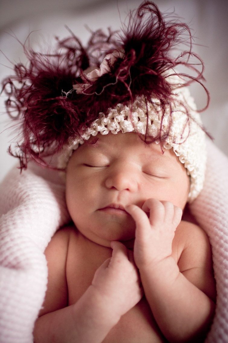 Again, she wore some of the hats I made, in my new hobby to make newborn hats & headbands for my clients. She was my first model, and first diaper I changed.. I’m starting to sense a pattern here!