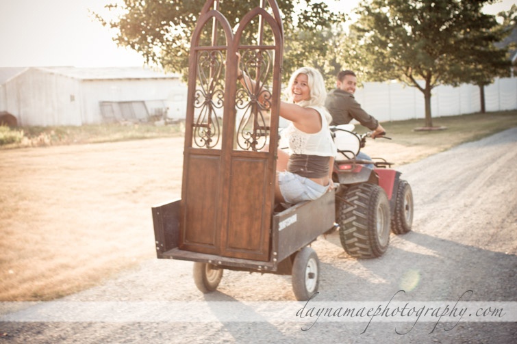 Nick drove the 4-wheeler to each location with our load of vintage props we found around the barn!