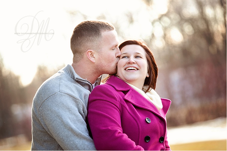 Where to start with this sweet, sweet couple… they LOVE to LAUGH.. and yes, at ME! 😉 We had such a fun time with their e-session, and Justin did a great job of keeping us both warm… well, I was kind of the designated coat rack for the day, so his coat, plus my coat made for a nice warm home for my mister cold camera, and myself!